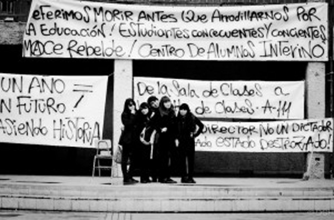 [4]Este experimento de autogestión, que ha comenzado a replicarse en Santiago y en otras ciudades, es una luz interesante de lo que los estudiantes somos capaces cuando nos organizamos. Igualmente, evidencia el verdadero conflicto que el gobierno tiene con las tomas. Si el liceo llegase a funcionar de forma más o menos regular, cumpliendo con mínimos requerimientos de evaluación, ¿cuál sería el problema de que los estudiantes controlen el edificio? Tomando en cuenta que uno de los argumentos fuertes en contra de las tomas (y que conduce a medidas ridículas como el adelantamiento de las vacaciones) es que se pierden clases, ¿cuál es el problema ahora que no perdemos clases? La autogestión del liceo ocupado devela el ámbito educativo en el que se da la verdadera contradicción: el control y la gestión de la escuela. Ya no es un problema de calendario o currículo, sino un problema propiamente político. Este experimento de autogestión es el primer paso práctico en la conciencia de esa contradicción, que puede traducirse en un combate organizado desde lo pedagógico contra el mercado educativo y la pedagogía estatalista.