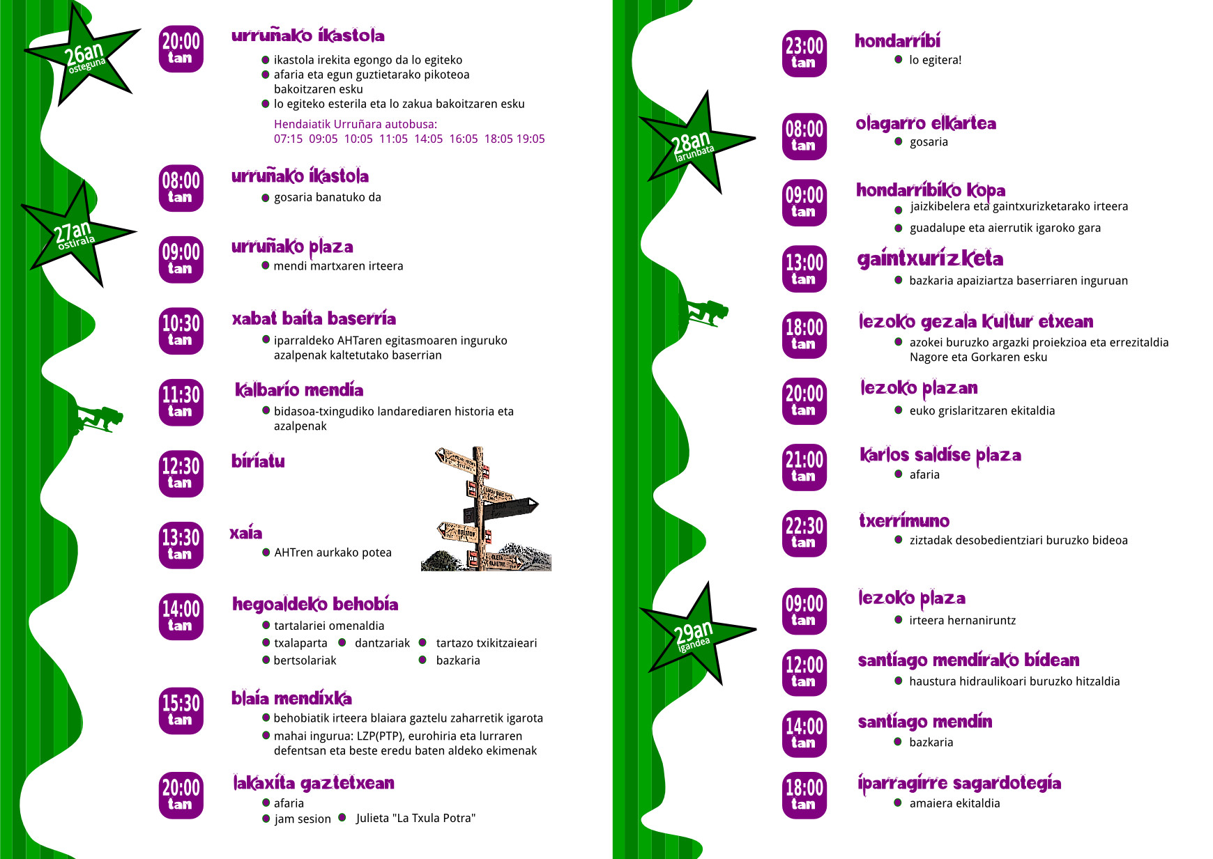 lau haizeetara aldarrikatzeko. Egunerokoan lurraren aldeko mugimendu anitzak egiten ditugu guztiok eta mendi ibilaldi honetan oinez eta elkarrekin emango ditugu urratsak lurrarekin bat eginez. Urruñatik Hernanira joango gara uztailaren 27tik – 29ra.