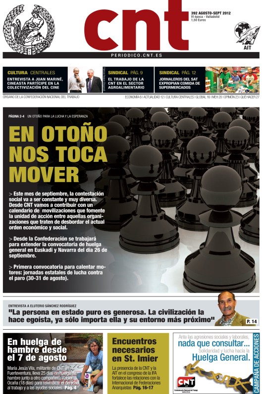 Ha salido el órgano de expresión de la Confederación Nacional del Trabajo correspondiente a los meses de agosto y septiembre del 2012. En este número entre otros temas encontraréis los siguientes: