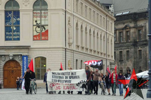 El Sindicato General de Dresde de la FAU-AIT (Alemania), se manifestó por la ciudad con banderas, pancartas y repartiendo folletos en protesta de los recortes sociales europeos y en apoyo a la Huelga general en el País Vasco y las movilizaciones llevadas a cabo por CNT. Se llevó a cabo de forma espontánea por Schlossplatz y el Nuevo Mercado de Albert Town Square y en el consulado español, leyendo un comunicado de apoyo en varios idiomas, incluido el español. En el evento participaron, también sindicalistas de Halle y personas de la red libertaria Dresde.