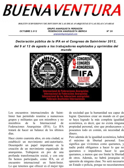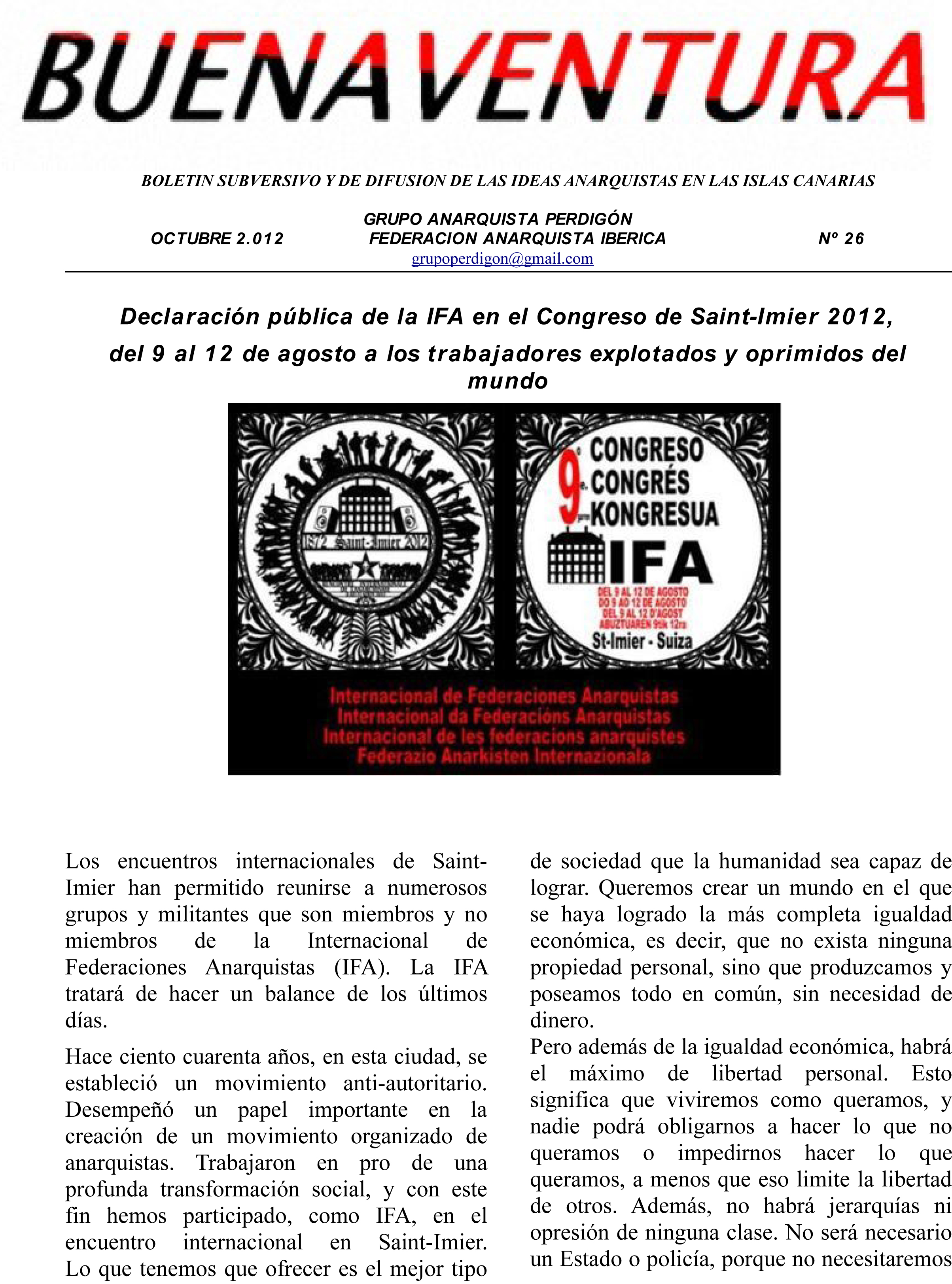 Declaración pública de la IFA en el Congreso de Saint-Imier 2012, del 9 al 12 de agosto a los trabajadores explotados y oprimidos del mundo.