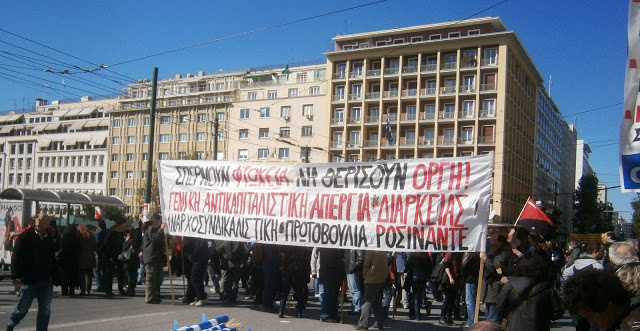 La huelga “general” del 20 de febrero de 2013, convocada por la Confederación General de Trabajadores Griegos, un sindicato oficialista vendido a la patronal, ha