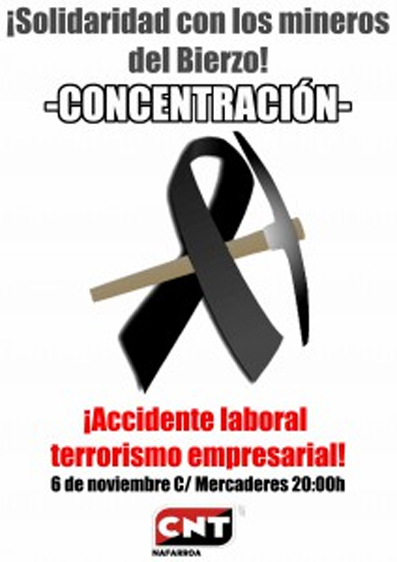 Desde CNT- Iruña damos nuestro más sentido pésame a las familias y compañeros afectados por el accidente y deseamos una rápida recuperación para los trabajadores heridos. Asismismo convocamos a los trabajadores de Iruñerria a concentrarse en solidaridad con estos, este proximo dia 6, a las 8 de la tarde en la calle mercaderes.