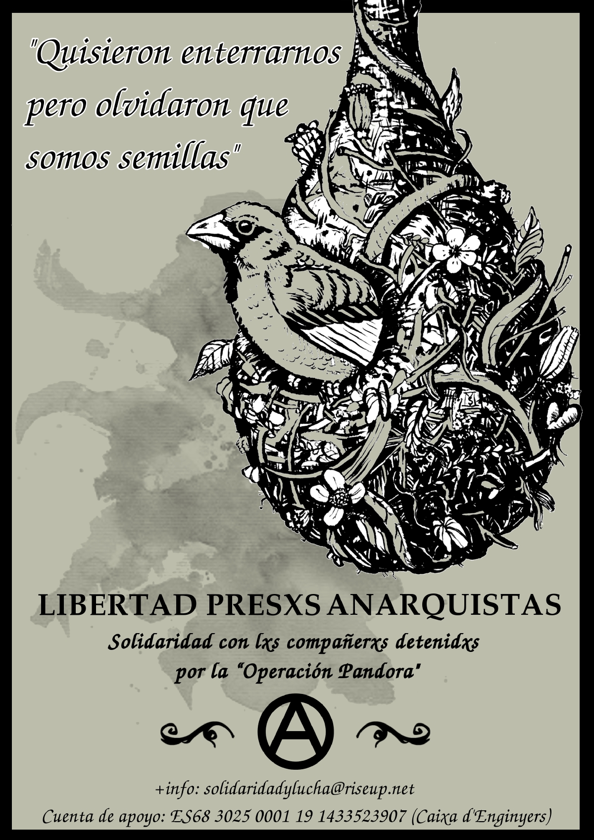 Como ya todo el mundo sabe, el pasado martes 16 de Diciembre 11 compañeras anarquistas fueron detenidas en Barcelona y Madrid en el marco de una operación antiterrorista orquestada por la Audiencia Nacional. 7 de ellas están actualmente en prisión preventiva bajo la ley antiterrorista, es decir, presas por ser ni culpables ni inocentes, simplemente por ser anarquistas.