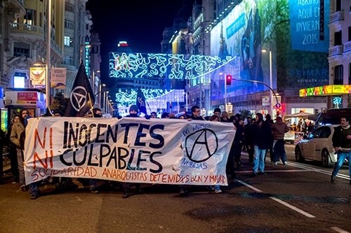 El intento de fijar una nueva organización terrorista anarquista no obedece sólo al intento de meter en la cárcel unos cuantos individuos. Forma parte de un proyecto más amplio para establecer una estructura que en el futuro posibilite más operaciones y que funcione para la disuasión o eliminación de cualquier expresión de disidencia combativa. Junto con la nueva Ley Mordaza, las modificaciones en el código penal, las creaciones de bases de datos europeas de sospechosos políticos (UCPI) o el desarrollo privilegiado de las unidades antidisturbios, el dispositivo antiterrorista forma parte del nuevo conjunto de herramientas represivas que se aplicarán sobre los sectores sociales que en la fase actual se nieguen a ser reacomodados por la resignación y la falsa ilusión de la regeneración y del «cambio». Entre la asimilación institucional y la pura y simple violencia represiva, los movimientos que se empeñen en confrontar a la continuidad del sistema un proyecto rupturista de revolución social, deberán encontrar la forma de romper el cerco con el que el Estado buscará aislarlos y asfixiarlos.