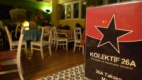 26A café es un café autoorganizado centrado en la economía anticapitalista. Se abrió un café en 2009 en Taksim y otro en 2011 en Kadıköy [ambos en Estambul]. Las cafeterías están a cargo de voluntarios. Su objetivo es la creación de un modelo económico donde viven personas oprimidas. Es importante mostrar a la gente ejemplos concretos de una economía anarquista, sin jefes ni objetivos capitalistas. Hablamos con la gente de por qué no vendemos las grandes marcas capitalistas como Coca Cola. Por supuesto, los productos que vendemos tienen relación con el capitalismo, pero cosas como Coca-Cola son símbolos del capitalismo. Queremos superar el boicot a productos y avanzar hacia economías y formas de producción alternativas.