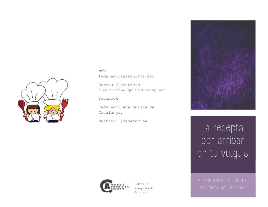 Desde la Federación Anarquista de Catalunya no pedimos el voto para nadie, tan sólo queremos pedir lucha. Lucha en los barrios, lucha en los pueblos, lucha en el campo, lucha en el trabajo y en los hogares, lucha en las escuelas y lucha en cualquier lugar donde haya injusticia y opresión.