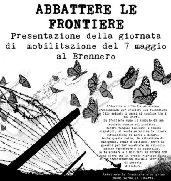 Razones suficientes como para que l@s anarquistas italian@s y austríac@s se movilizasen, pues como anarquistas nos oponemos a los Estados que fomentan el nacionalismo, levantando muros y cerrando fronteras, y también a los Estados que apoyan el capitalismo global y la libre circulación del dinero, pero ponen veto a la entrada de las personas; además como solidarias continuaremos apoyando la libertad de movimiento en general de las personas, que deben poder desplazarse y vivir donde quieran, ya sea para huir de situaciones difíciles o para mejorar sus condiciones de vida.