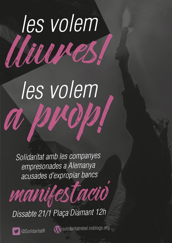 Las compañeras anarquistas acusadas de participar en una expropiación a una sucursal bancaria en Aachen en noviembre de 2014 siguen encarceladas en Alemania a espera del comienzo de juicio el 23 de enero de 2017. La compañera holandesa, procesada también por expropiaciones a sucursales bancarias en el mismo territorio, se encuentra en libertad a día de hoy, aunque la fiscalía ha presentado un recurso tras su absolución.