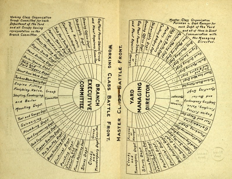 Pero el sindicalismo pasó de una primera etapa de apoliticismo y de reivindicación meramente laboral, de mejora de condiciones, a cuestionar su rol en la sociedad. Los sindicatos eran organismos de autoorganización laboral, pero también podían ser organismos de poder obrero. En las grandes huelgas los comités obreros controlaban no sólo las zonas fabriles para que no entraran esquiroles a trabajar sino también sus barrios y en ocasiones incluso poblaciones enteras. Los comedores populares, las guarderías, los piquetes eran habituales. La conciencia de este poder, de capacidad de gestionar un territorio, fue generando un sindicalismo político, político de sí mismo. La praxis de huelga, sabotaje, boicot y label había creado escuela.