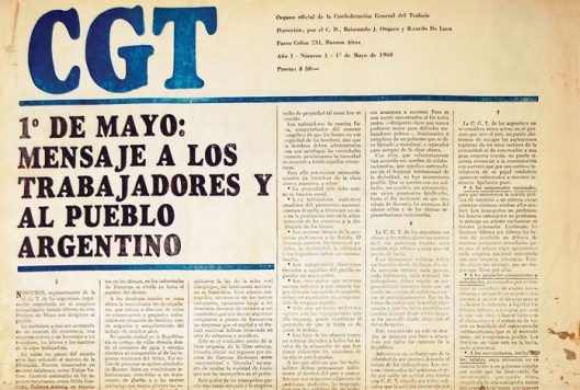 Siguiendo en Argentina pero en 1968, la central sindical CGTA lanzó en público un programa nítidamente revolucionario. A pesar de provenir de una mezcla de conceptos marxistas, peronistas revolucionarios o de la teología de la liberación, el programa se puede leer claramente en clave sindicalista revolucionaria: propiedad social, intervención obrera en la administración de las empresas y la distribución, nacionalización de los sectores básicos de la economía, reforma agraria, expulsión de las empresas monopolistas, no reconocimiento de los compromisos financieros, educación pública… En definitiva, hacen un llamamiento a la acción política del sindicalismo, que denominan sindicalismo integral, y pretenden proyectarlo hacia el control del poder.
