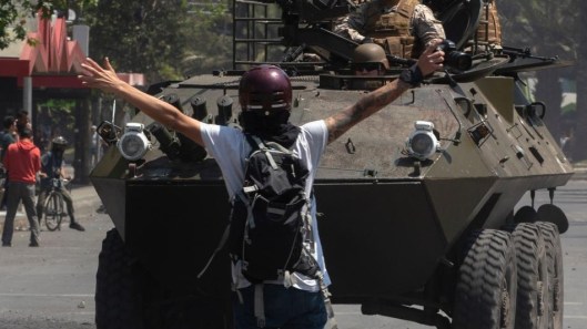 Dado el nivel de conflictividad y la propagación masiva más allá de las estaciones de metro, por varias comunas y barrios de Santiago, además de las expresiones de apoyo desde otras regiones del país. El gobierno de Chile, con Sebastian Piñera a su cabeza, no tiene otra idea mejor que la de declarar el estado de excepción, aplicando toque de queda y anunciar la aparición del Ejercito de Chile en las calles del país. Por primera vez desde que instauraron su democracia, reaparecen los tanques y los esbirros a enfrentar abiertamente a la población civil en las calles.